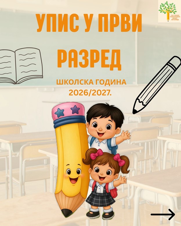 ОбавештењеДатум: 01. April 2026 10:46 Категорија: НовостиУ први разред основне школе за школску 2026/2027. годину уписују се деца рођена од 1. марта 2019. године до 28. фебруара 2020. године.Упис деце у први разред основне школе обавиће се у периоду од 1. априла до 31. маја 2026. године и вршиће се електронским путем. Да би сте електронским путем заказали термин за упис и тестирање Вашег детета, на порталу еУправа, биће омогућена услуга еЗаказивања термина за упис и тестирање детета у школи. Родитељима ће апликација електронско заказивање термина бити доступна од 24. марта до 31. маја 2026. године. Родитељи приликом уписа детета не подносе ниједан документ у папирном облику (извод из матичне књиге рођених, евиденција пребивалишта, уверење о завршеном предшколсмом програму и потврда о здравственој спремности детета за полазак у школу). Све податке ће школа прибавити по службеној дужности, електронским путем. Све молбе родитеља ученика који имају пребивалиште ван територије наше школе, а које је школа примала до 1. фебруара 2026. године, овлашћено лице школе ће унети у апликацију до 20. марта 2026. године.За сва додатна питања у вези са уписом можете се обратити секреатару школе на број 011 787 00 77.![]() |